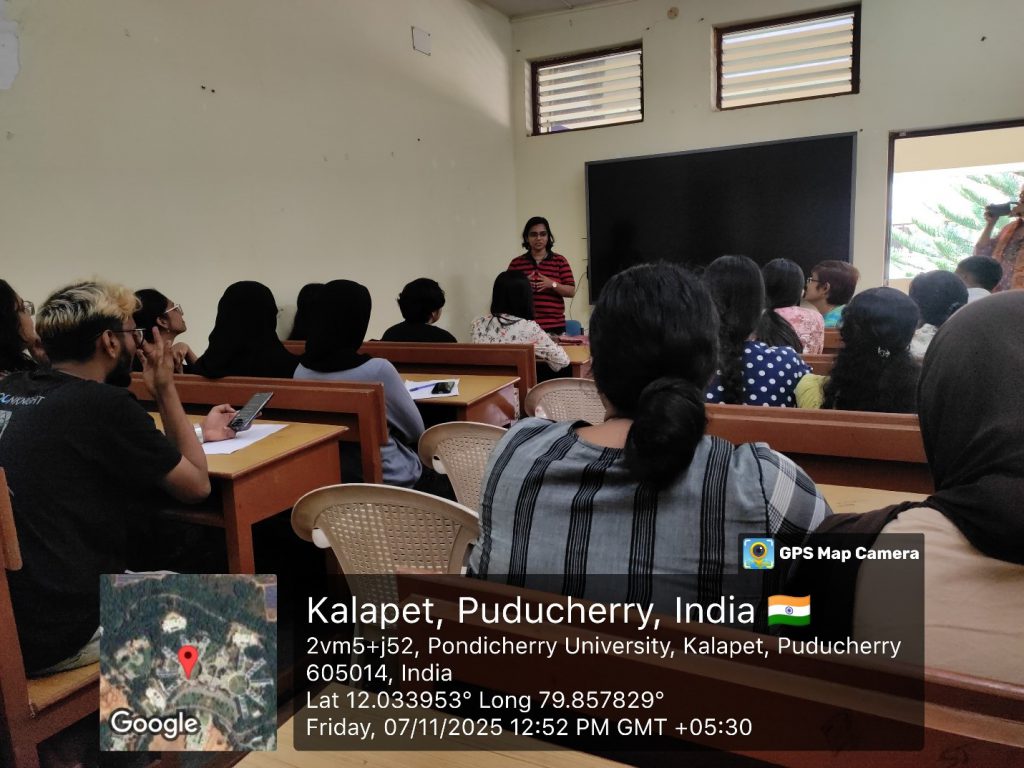 Dr. Rakhi V. Darne, Head Physiotherapist of the Indian Women’s Cricket Team, visited the Centre for Women’s Studies, Pondicherry University for an interactive session on women in sports. The session, held from 12:30 p.m. to 1:30 p.m., was attended by students, research scholars, and faculty members.