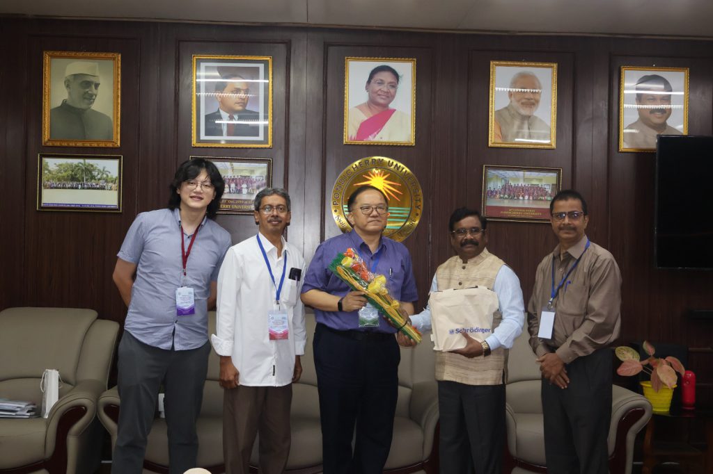 Our eminent Vice-Chancellor, Prof. P. Prakash Babu, met Dr. Hsing-Pang Hsieh and Dr. Kun-Hung Lee from the National Health Research Institutes (NHRI), Taiwan, on 29th October 2025. The visit was part of an ongoing India–Taiwan collaborative research project, jointly led by Dr. S. Mohane Coumar and Prof. A. Dinakara Rao from the Dept. of Bioinformatics, PU. The meeting focused on strengthening collaborative research in drug discovery and biomedical sciences.