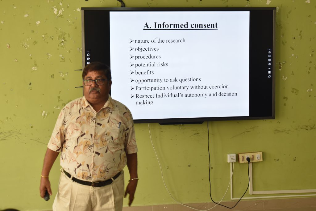 The Department of Library and Information Science, Pondicherry University, organized an invited talk on “Ethics in Scholarly Communication” on April 21, 2026. Prof. N. Arumugam (Retd.), Department of Biotechnology, Pondicherry University, was the resource person. He highlighted the importance of maintaining integrity, transparency, and accountability in academic research and publishing. The talk provided valuable insights into ethical practices essential for maintaining the credibility and quality of scholarly communication. The programme witnessed active participation from research scholars of Pondicherry University, who engaged in meaningful discussions and interactions during the session.