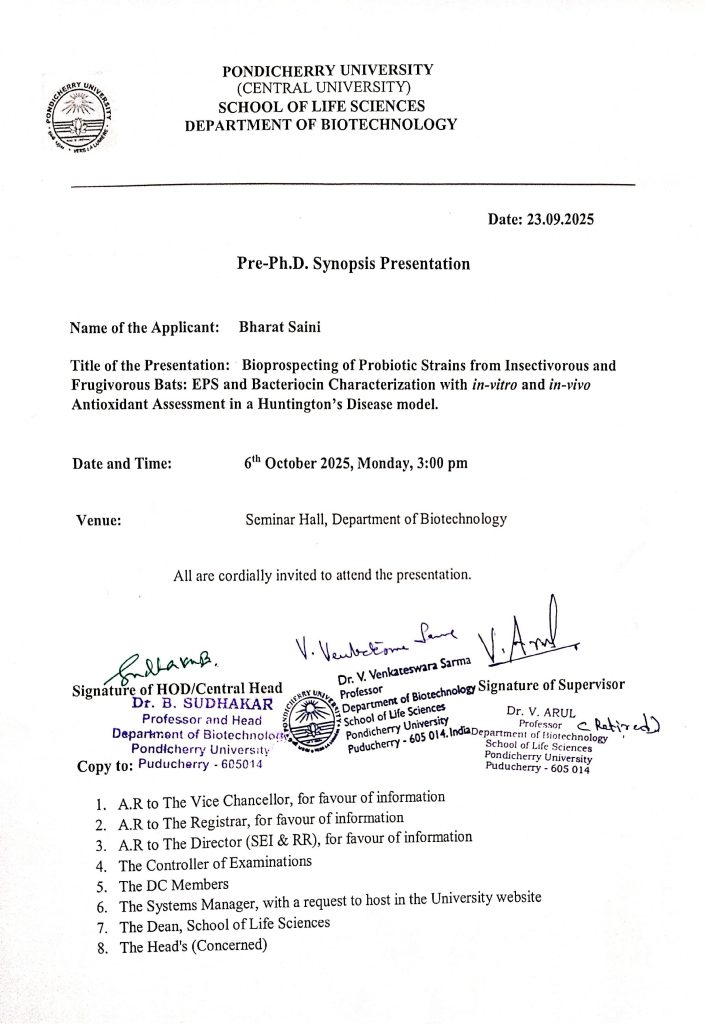 Pre-Ph.D. Synopsis Presentation notification of Mr. Bharat Saini on 06.10.2025