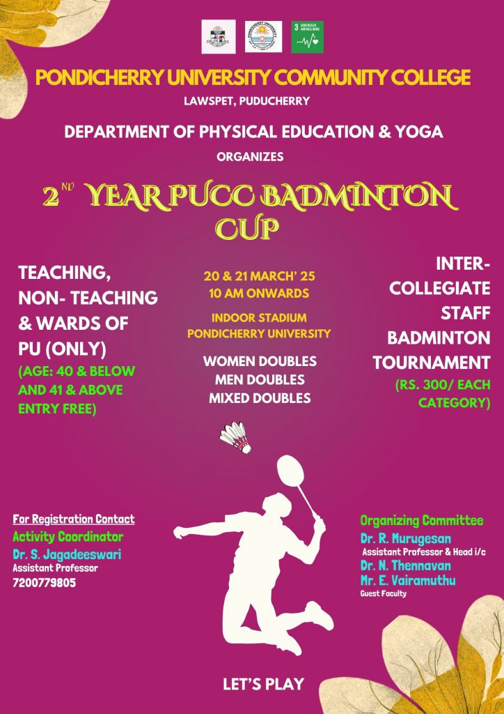 2nd Year PUCC Badminton Cup – PUCC, Lawspet