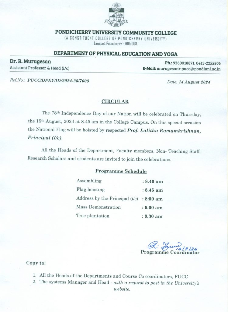 78th Independence Day Celebrations on 15.08.2024 – PUCC, Lawspet