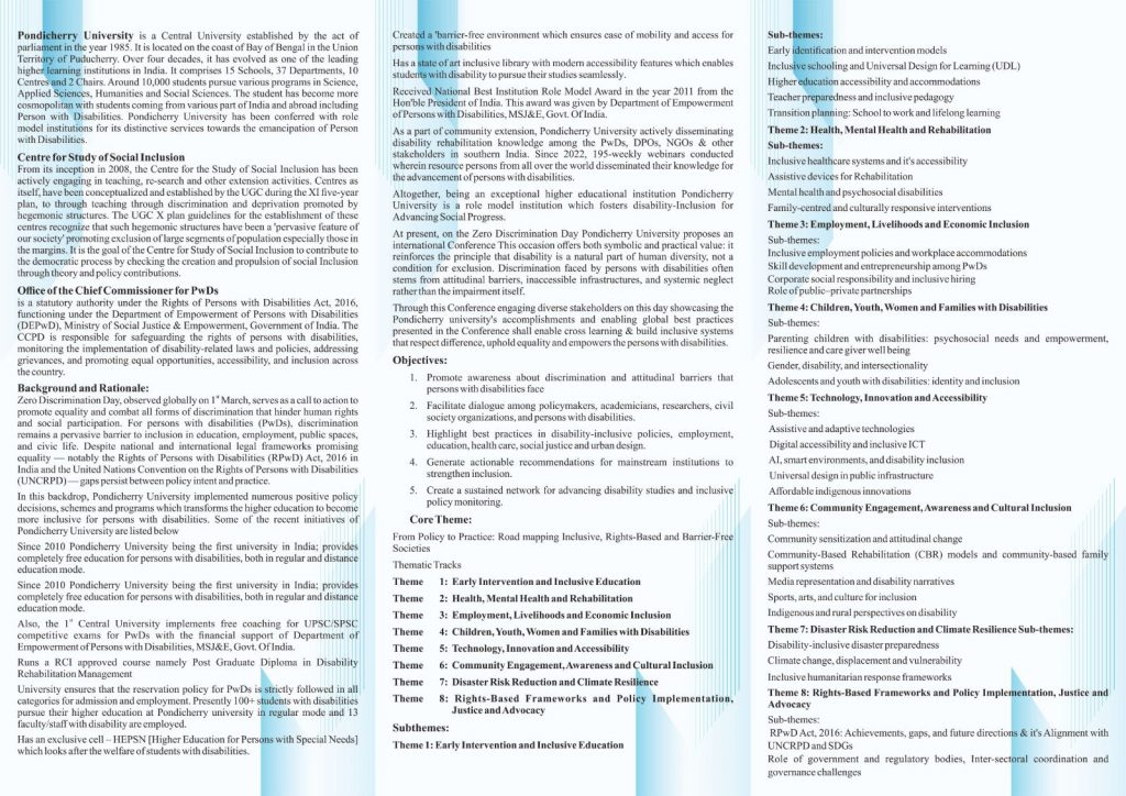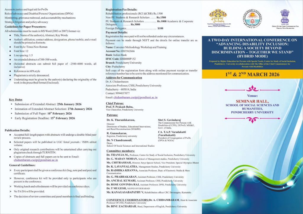 A Two-Day International Conference on “Advancing Disability Inclusion: Building A Society Beyond Discrimination-Together We stand”