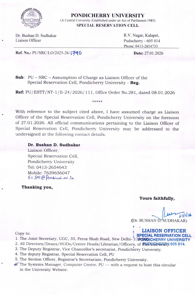 Assumption of Charge as Liaison Officer of the Special Reservation Cell
