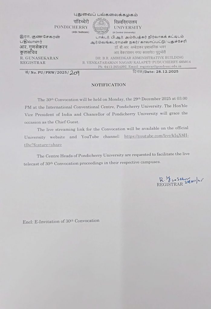 Centre Heads are requested to facilitate the live telecast of 30th Convocation proceedings in their campuses