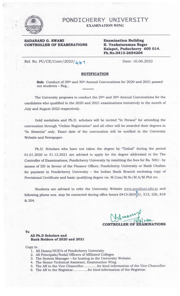 Conduct of 29th and 30th Annual Convocation for 2020 and 2021 passed out students