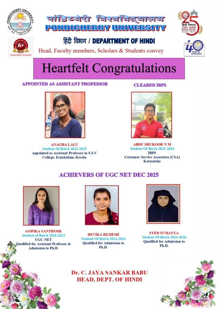 Congratulations Message – Department of Hindi