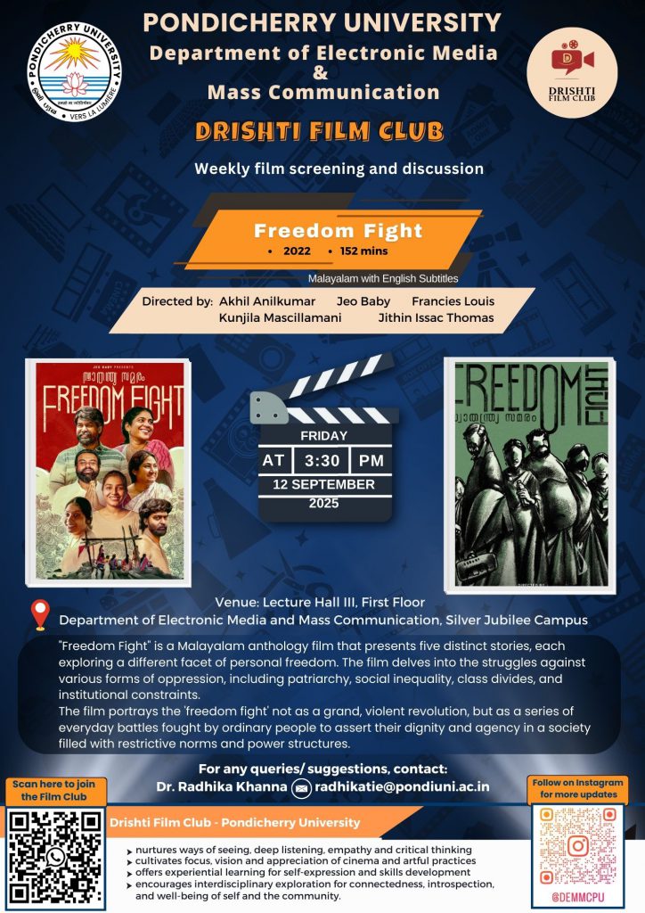 Drishti Film Club, Department of Electronic Media and Mass Communication, organises a film screening, “Freedom Fight”.