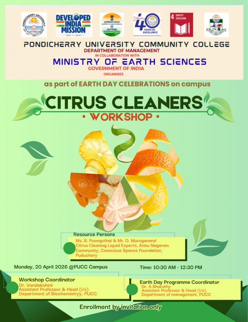 Earth Day Celebrations – Workshop on “Citrus Cleaners” – PUCC, Lawspet