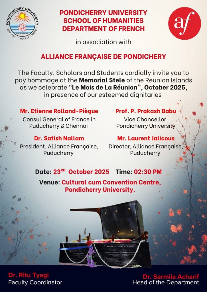 Homage to be offered at the Memorial Stele on the occasion of “Le Mois de La Réunion.” – Department of French