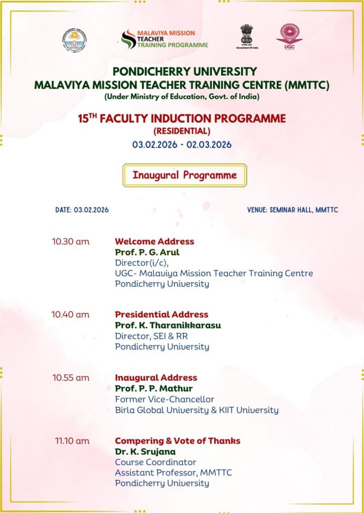 Inaugural Programme – 15th Faculty Induction Programme – UGC-MMTTC