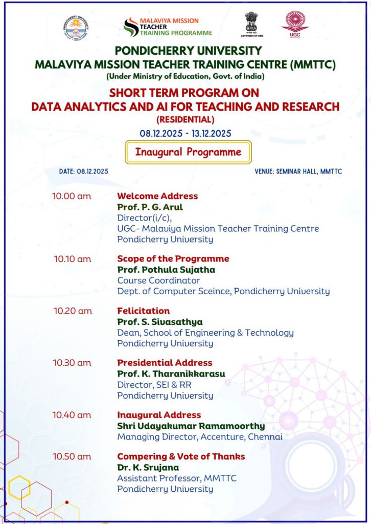 Inaugural Programme – Short Term Program on “Data Analytics and AI for Teaching and Research” – UGC-MMTTC