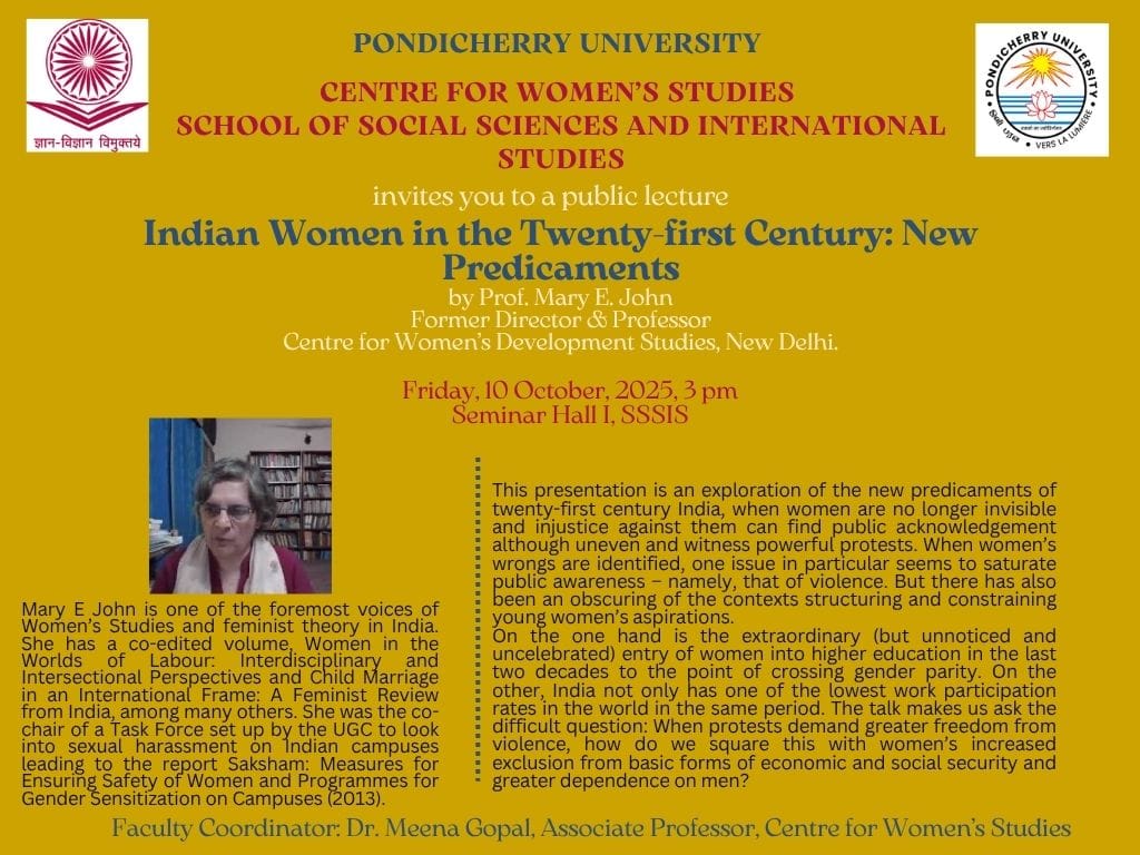 Lecture on “Indian Women in the Twenty-first Century: New Predicaments” – Centre for Women’s Studies
