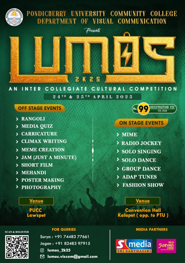 LUMOS 2K25 – An Inter Collegiate Cultural Competition – PUCC, Lawspet