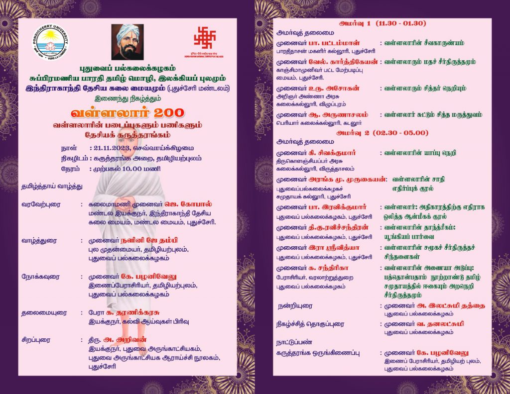 National Seminar on Contribution and Works of Vallalar