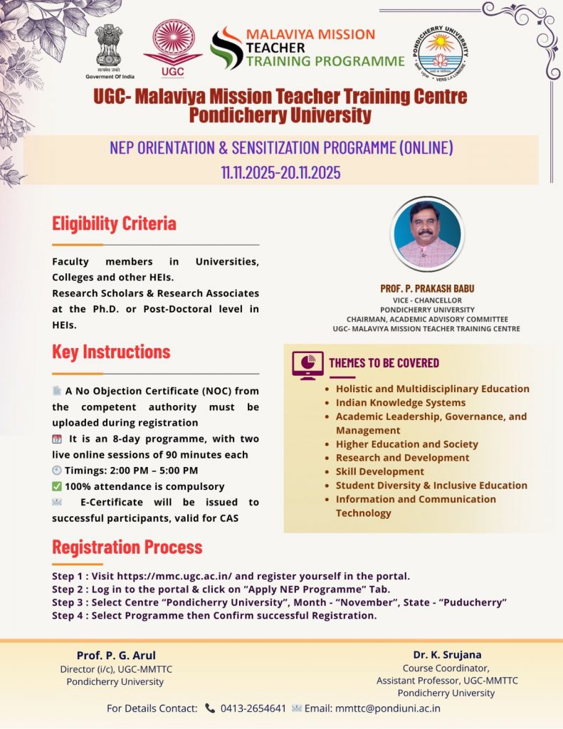 ‘NEP Orientation and Sensitization program’ (ONLINE) – UGC- MMTTC