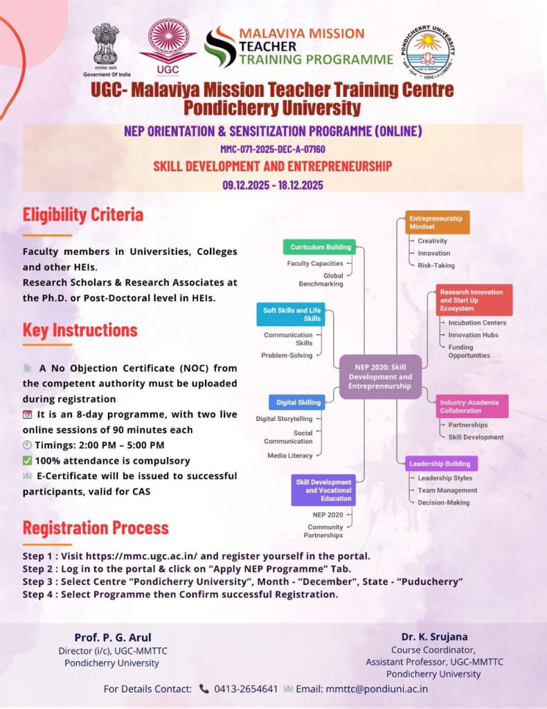 NEP Orientation & Sensitization Programme (Online) – Skill Development and Entrepreneurship – UGC-MMTTC