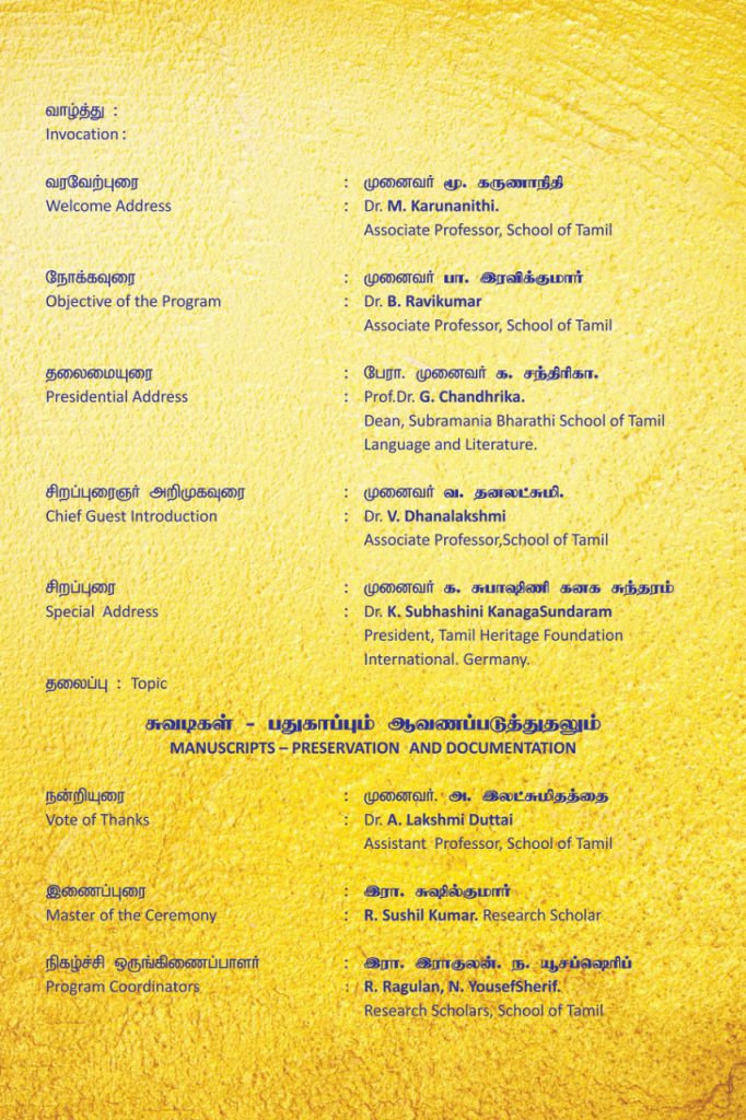 Dean(i/c), Subramania Bharathi School of Tamil Language & Literature,