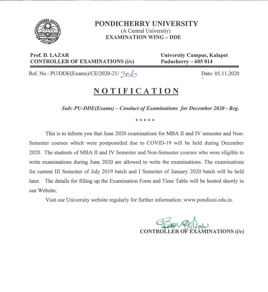 PU-DDE(Exams)- Conduct of Examinations for December 2020