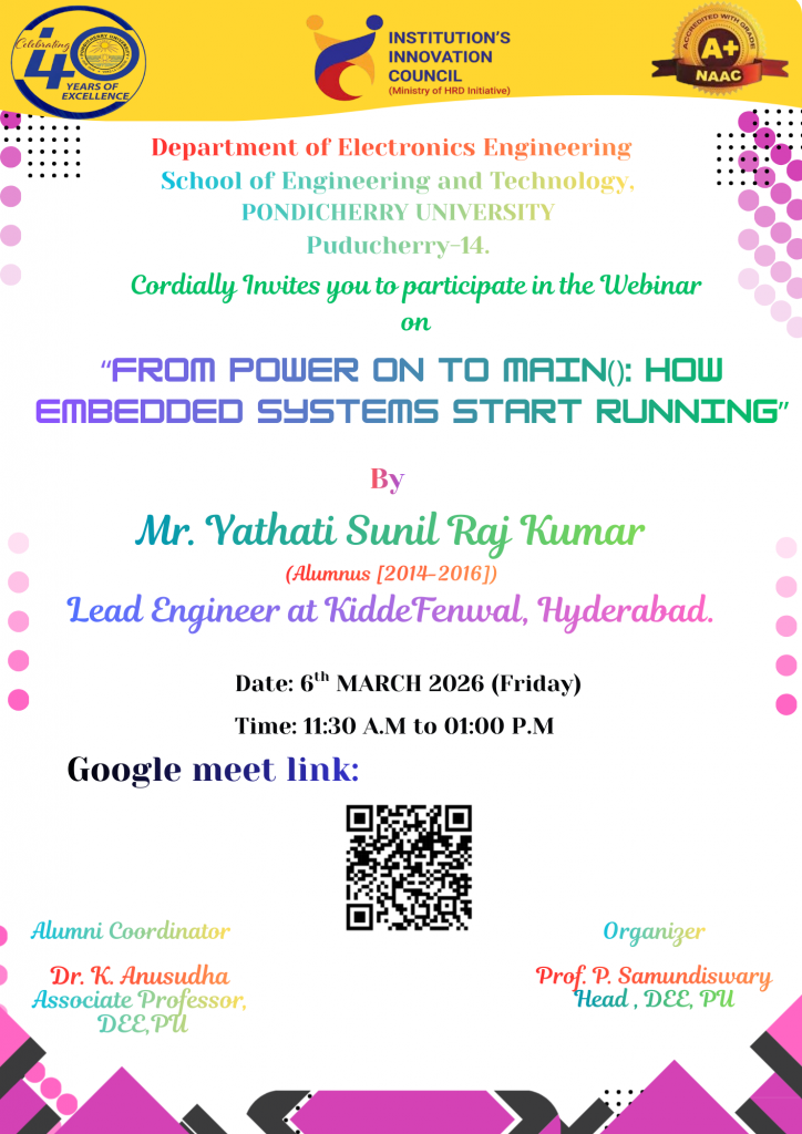 Webinar on From Power On to Main (): How Embedded Systems Start Running – Department of Electronics Engineering