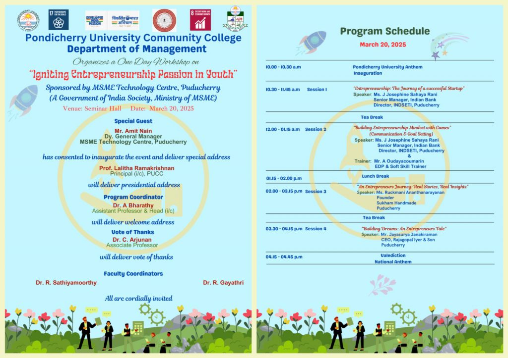 Workshop on Igniting Entrepreneurship Passion in Youth – Department of Management, PUCC, Lawspet